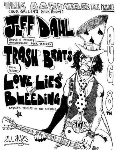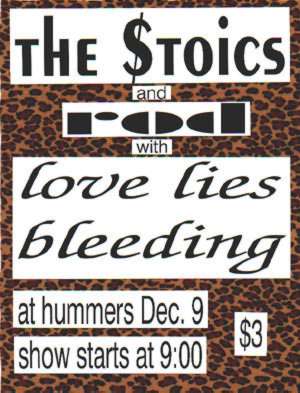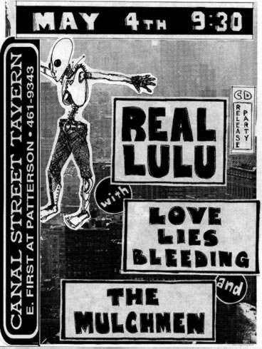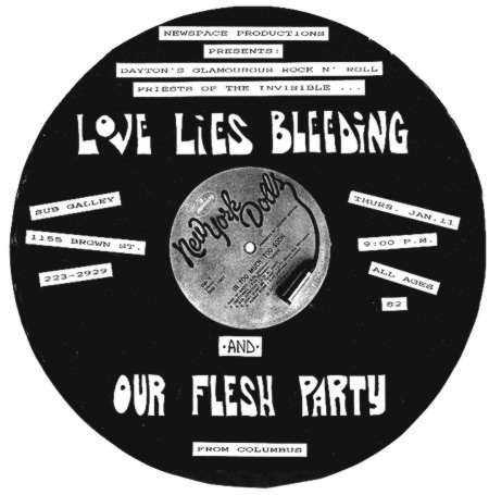 Formed in Fall of 1995 by Jimmy Magnuson, George Bradley (Sourbelly, Tim, The Migraines, the Jackalopes), & Steven Gullett (Freakstrobe,solo) this band shook things up around Dayton before personality clashes sent things into the grave. Musically a blend of Steven's solo songs turned into band arrangements in the vein of Chainsaw Kittens & his obvious Stooges/Glam influences mixed with George's Ramones/Pop Punk leanings and the no nonsense punk sensabilty of Mr. Magnuson.Together for a mere 9 months Love Lies Bleeding played over 40 shows around the midwest thanks to the booking prowess of Mr. Bradley. They shared bills with THE CHICKENHAWKS (Iowa), CRAW (Cleveland), & opened a GUIDED BY VOICES record release show with only 5 hours notice.